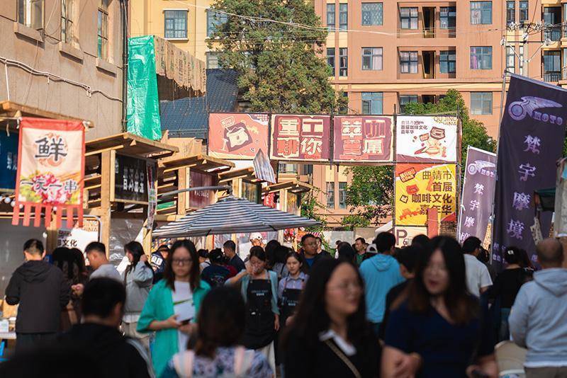 踏入曲靖重机印象创意园,往昔车床轰鸣、齿轮咬合、锻锤铿锵的钢铁交响早已沉淀为岁月的印记,如今空气中弥漫着咖啡的焦香,与人们的欢声笑语、游客与摊主的谈笑声交织。老厂房褪去了工业的厚重,多了几分烟火气的鲜活。