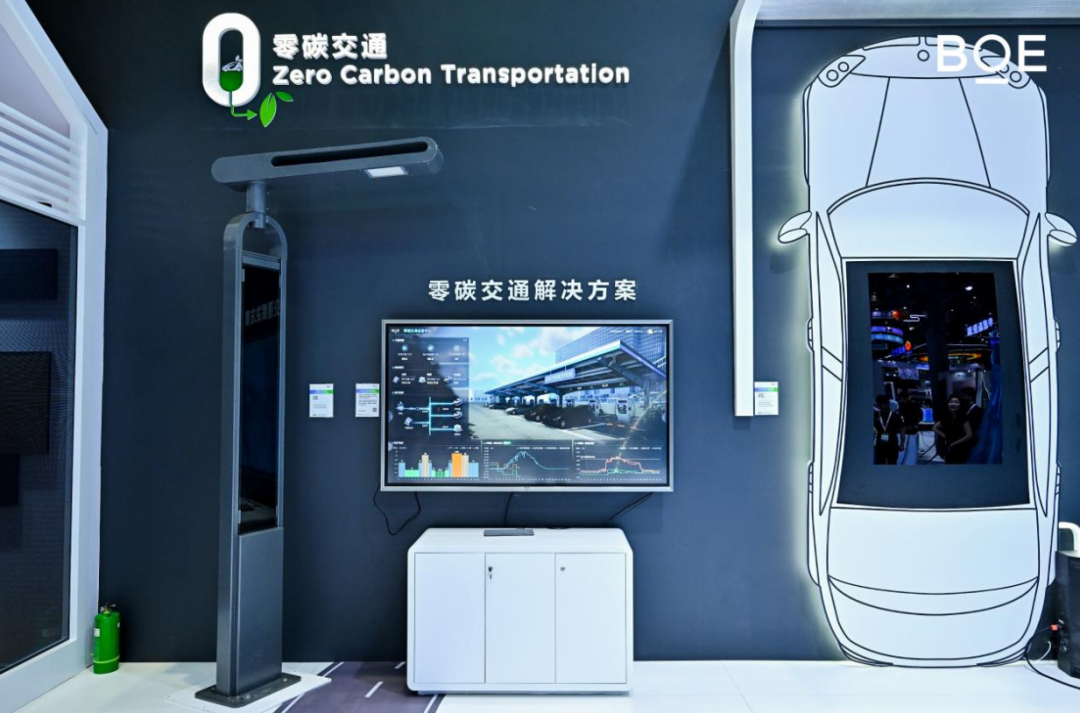 在零碳交通展区内,BOE(京东方)带来了首发的钙钛矿CIPV(车载光伏)调光玻璃天幕,其应用柔性钙钛矿发电技术,通过太阳能自主驱动实现车顶动态变色,在烈日下和阴雨环境中自适应车内明暗,重新定义燃油车的智能交互体验。而BOE(京东方)展出的多款交通领域综合能源解决方案均融合了光伏、储能与充电技术,搭载光储充一体化管理系统,有效提升能源利用率。同时通过AI数智化实现“自发自用、余电存储、灵活调峰”的低碳模式,助力交通绿色转型。