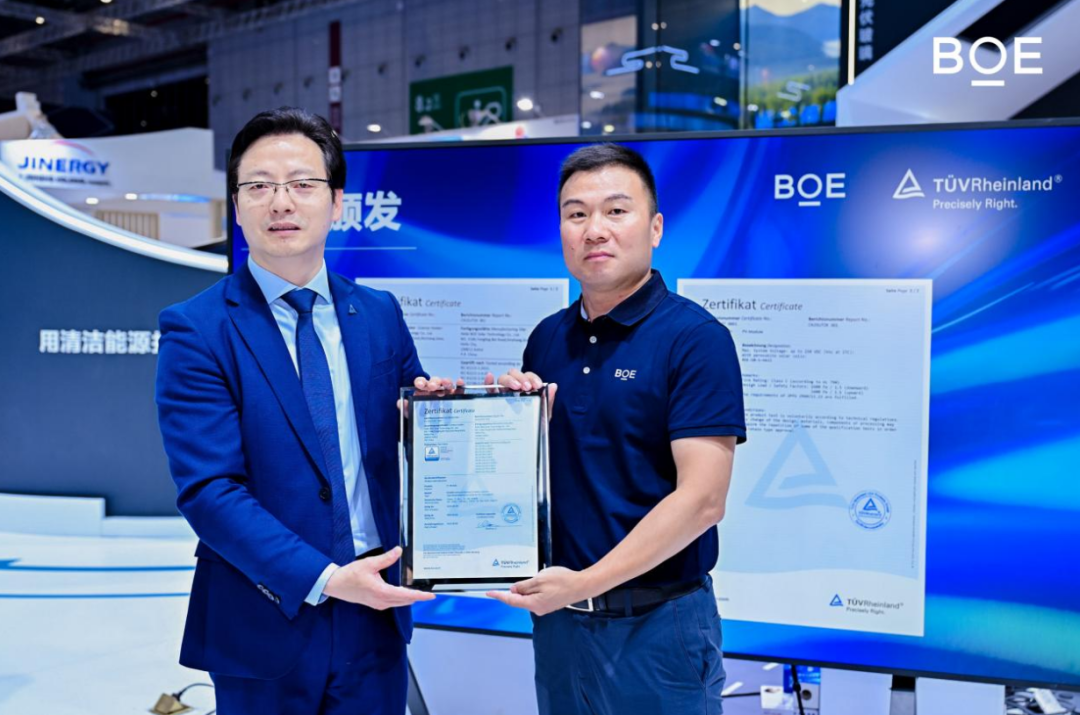 与此同时,BOE(京东方)在展会上还隆重举行了“钙钛矿光伏组件IEC认证证书颁发仪式”,德国莱茵TÜV集团全球电力电子产品服务副总裁兼大中华区太阳能与商业产品服务副总裁李卫春为BOE(京东方)颁发了IEC 61215/61730认证证书股票配资导航网站,标志着BOE(京东方)在钙钛矿光伏组件的可靠性达到行业头部水平,也是对BOE(京东方)在该领域技术产品水平的高度认可。