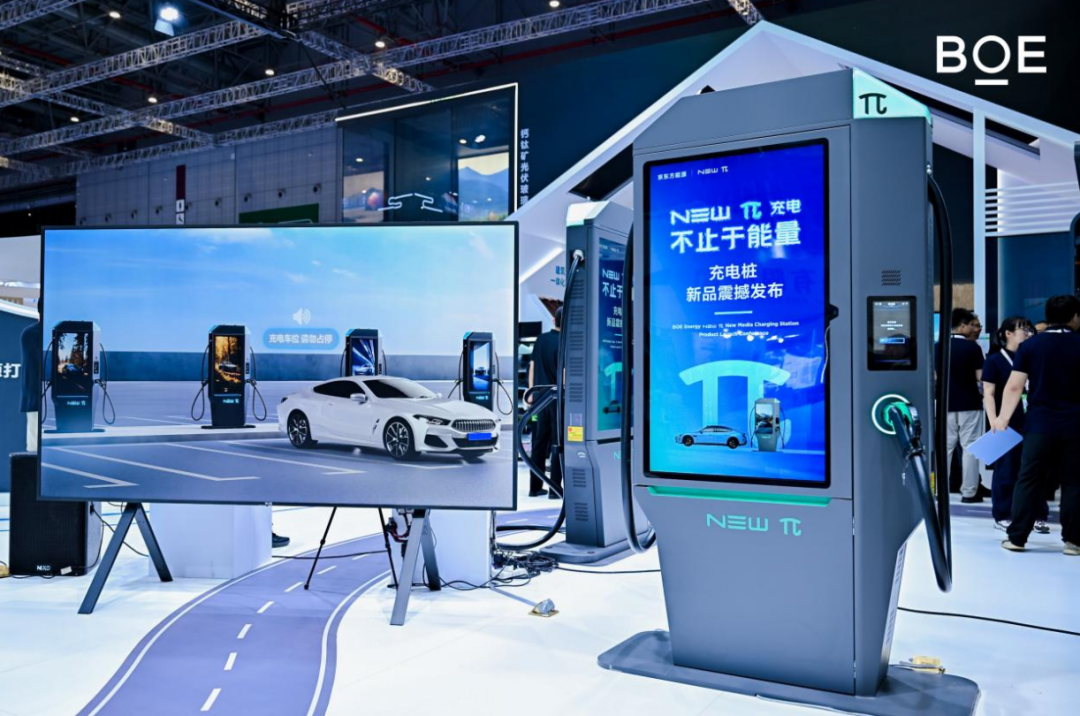 展会同期,BOE(京东方)还成功举办了一系列重要活动,邀请众多来自产业链上下游及重要合作机构的领导嘉宾出席。在New π 新派充多媒体充电桩发布仪式上,相关嘉宾共同见证了这一创新成果的亮相。本次发布新品以“能源+媒体”双核驱动为核心理念,设计集聚商业模式创新和能量无穷无尽的概念,采用分体式柔性充电方案,最大输出功率高达250KW,配备正反面各1块55英寸屏幕及1块10.1英寸触摸屏,巧妙融合充电场景与户外数字广告场景,以“New”所代表的“新技术、新体验、新模式”有效拓展绿色能源服务生态,助力城市智慧能源网络建设。